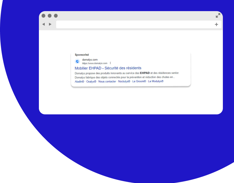 Afin de toucher une cible de niche constituée de professionnels des établissements gériatriques, Domalys a fait appel à l’Agence SBA pour réaliser une campagne d’acquisition de trafic ciblée. Grâce aux résultats très positifs, la campagne publicitaire a été renouvelée de nombreuses fois afin de promouvoir les objets innovants de cette entreprise reconnue sur le marché de la silver économie.